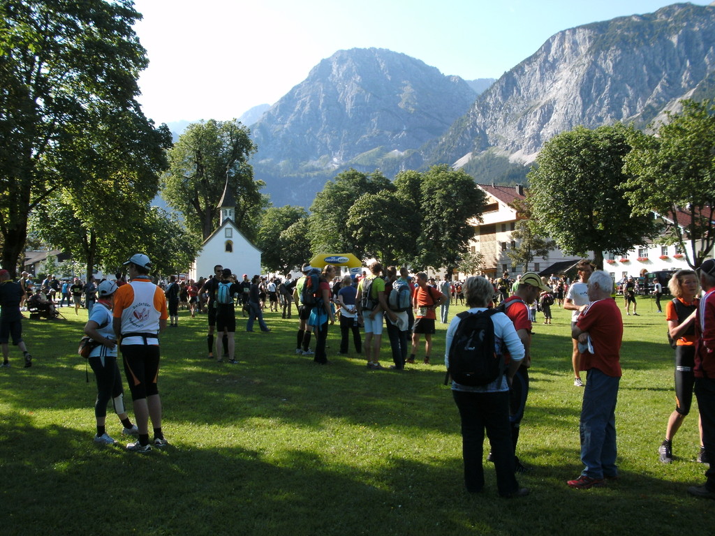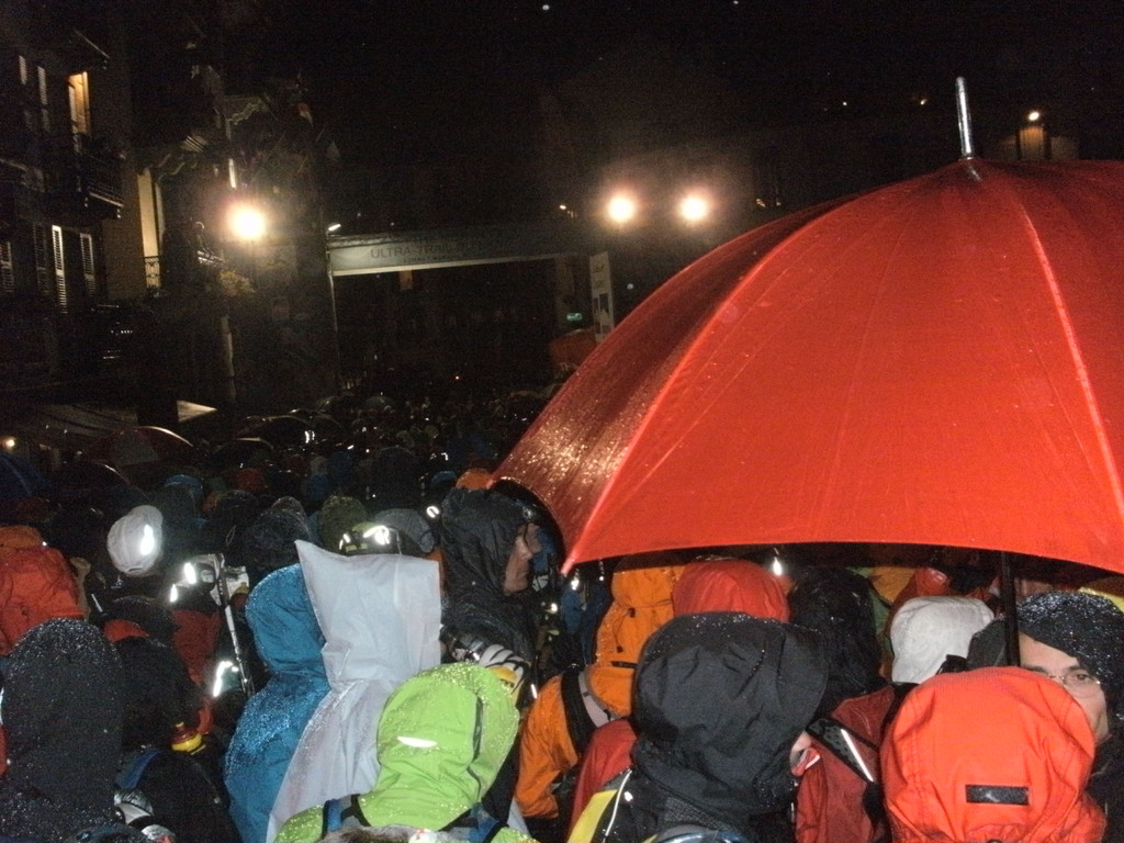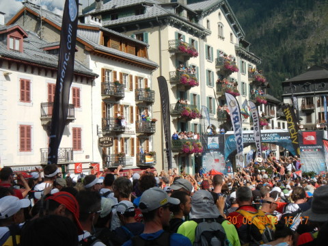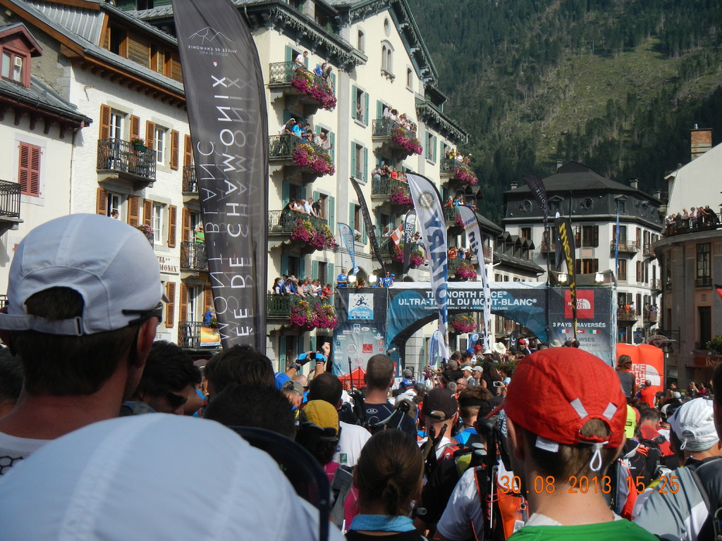 In Chamonix angekommen gönnte ich mir noch einen Teller Pasta, um dann meine endgültigen Laufvorbereitungen zu treffen. Um 16 Uhr machte ich mich auf zum Start, mitten in Chamonix, auf dem Kirchplatz.