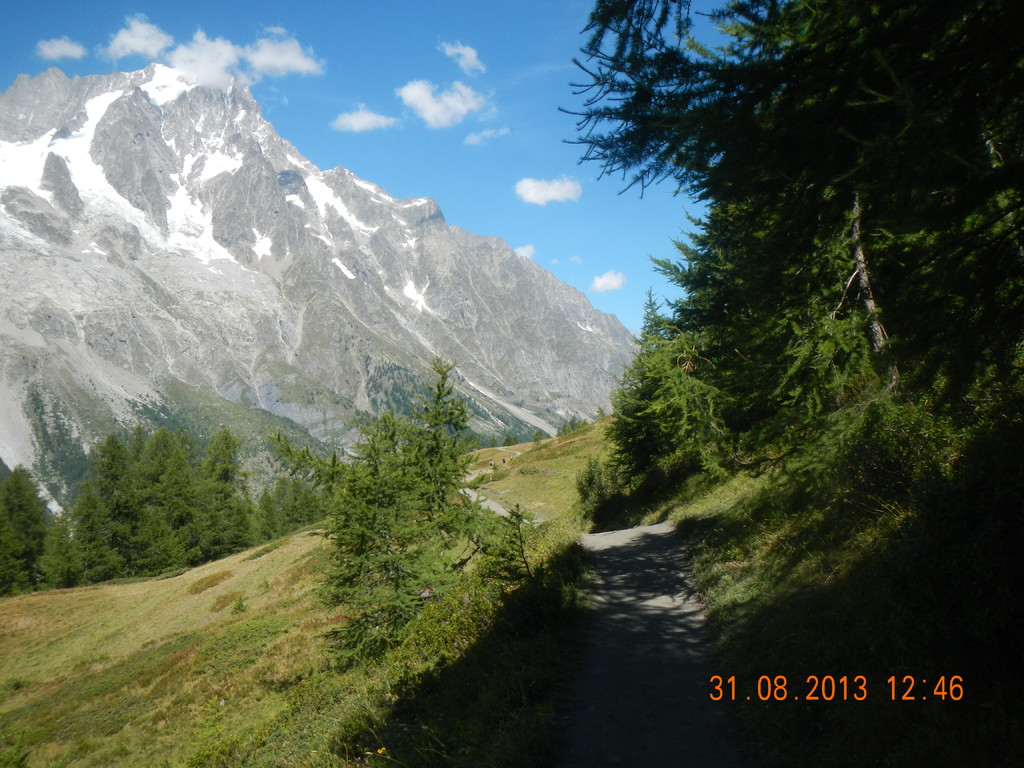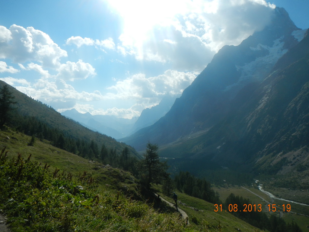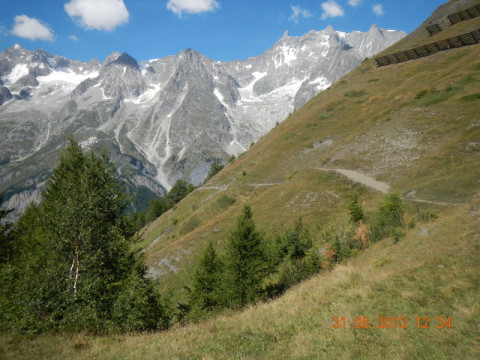 Nun folgt ein sehr unbequemer, steiler Abstieg von knapp 800 Höhenmeter auf nur 4 Kilometern, nach Courmayeur (1200 Meter).