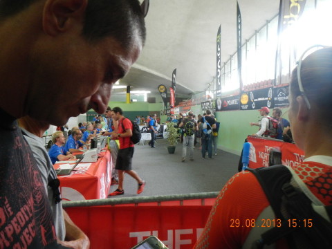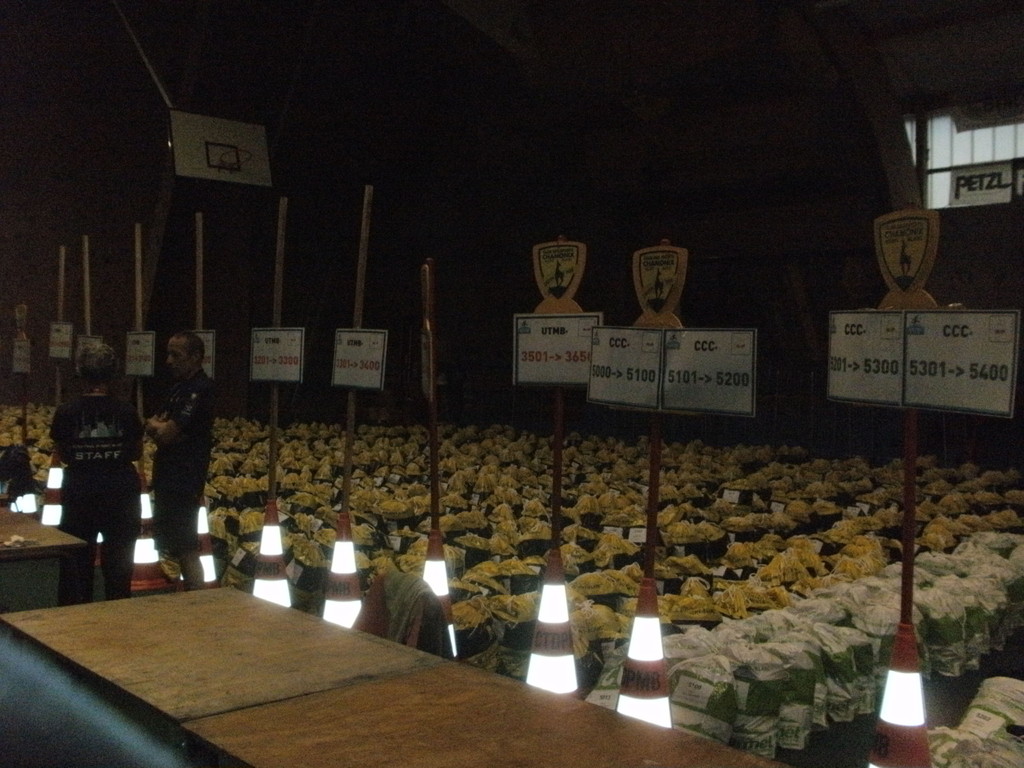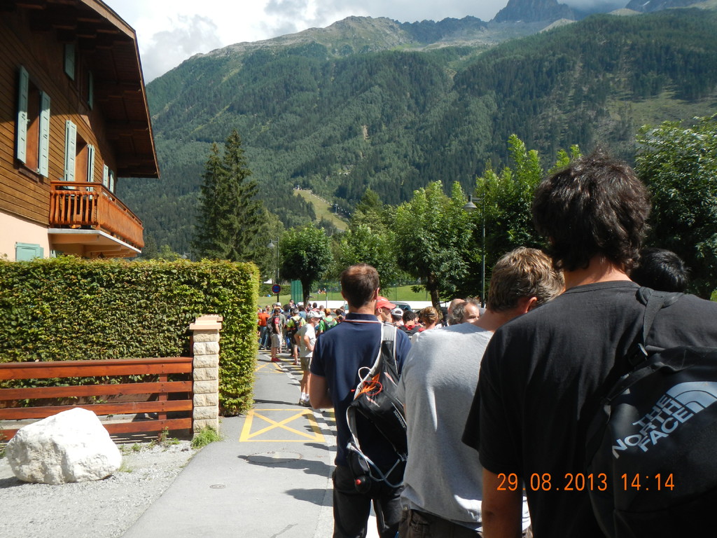Ich bin am Mittwoch, dem 28. August, zum Mont Blanc aufgebrochen. Die Nacht hatte ich eine Unterkunft auf der italienischen Seite des Berges gebucht. Diese erreichte ich nach gut 8 stündiger Fahrtzeit und 700 km. Am Morgen des 29. machte ich mich nach Chamonix auf, zur Startunterlagenausgabe. Nachdem ich über 2 Stunden in einer Schlange zum Checkin gewartet hatte, war ich gegen 17 Uhr mit allen erforderlichen Dingen (u.a. kontollierter Rucksack, Startnummer und Transponder) ausgestattet.