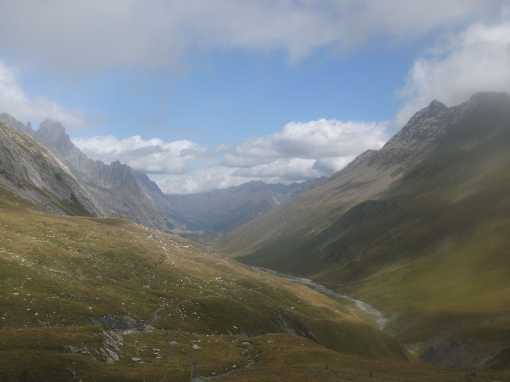 Auf 2000 Metern geht es dann hinüber zum Refuge Bonatti. Es ist ein landschaftlich sehr schöner Streckenabschnitt. Auf knapp 8 Km geht es auf 300 kuliminierten Höhenmetern hoch und runter.