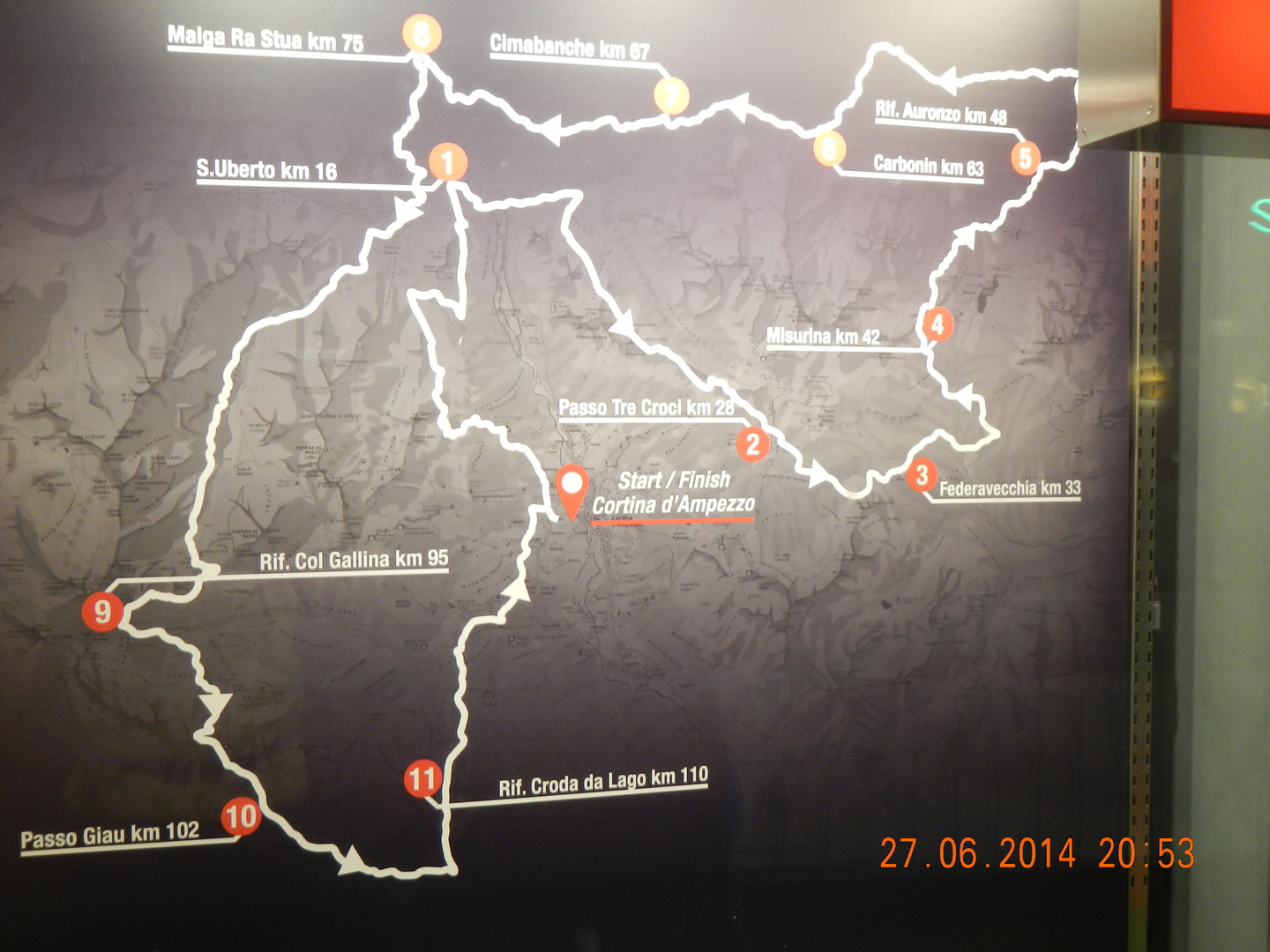 Hier hat man etwas weniger, als die Hälfte des Laufes absolviert (77 Km).